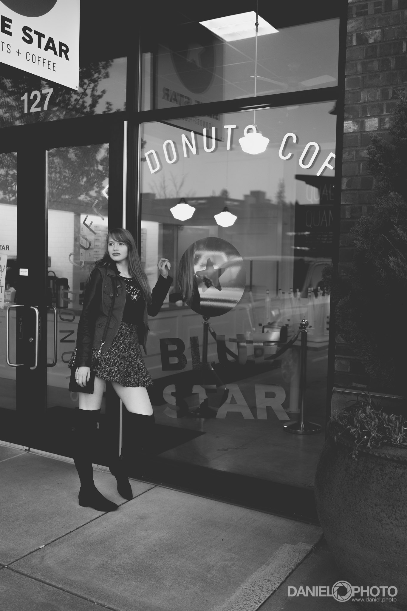 I never have quite as much time as I’d like when I visit Portland. So instead of big shoots that require driving and setup and all that, we opted for something simple this time. Ava Roasteria has a great location in Progress Ridge next to a large pond. There are outdoor tables on the west side of the building, so it was a perfect place to catch the setting sun. As always, Kayla was awesome, and made my job easy.