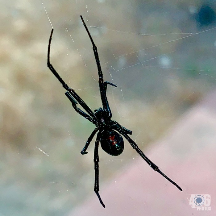 This summer, there’s a new resident in the garage window. I glanced over at the window last week and saw her, just hanging out. I thought she looked familiar, so I got closer. Sure enough, there was a red hourglass on the underside of her belly. I’d seen a black widow a decade or two before, but this is the first one that didn’t run and hide immediately.