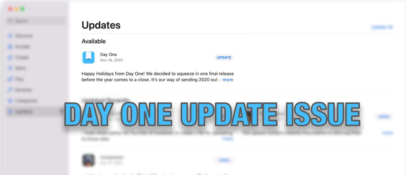 Apparently it’s more of an App Store thing than a Day One thing. I’ve had multiple apps fail to update on both the MacBook Pro and the MacBook Air. They eventually update if I keep trying, but it’s definitely a glitchy process.