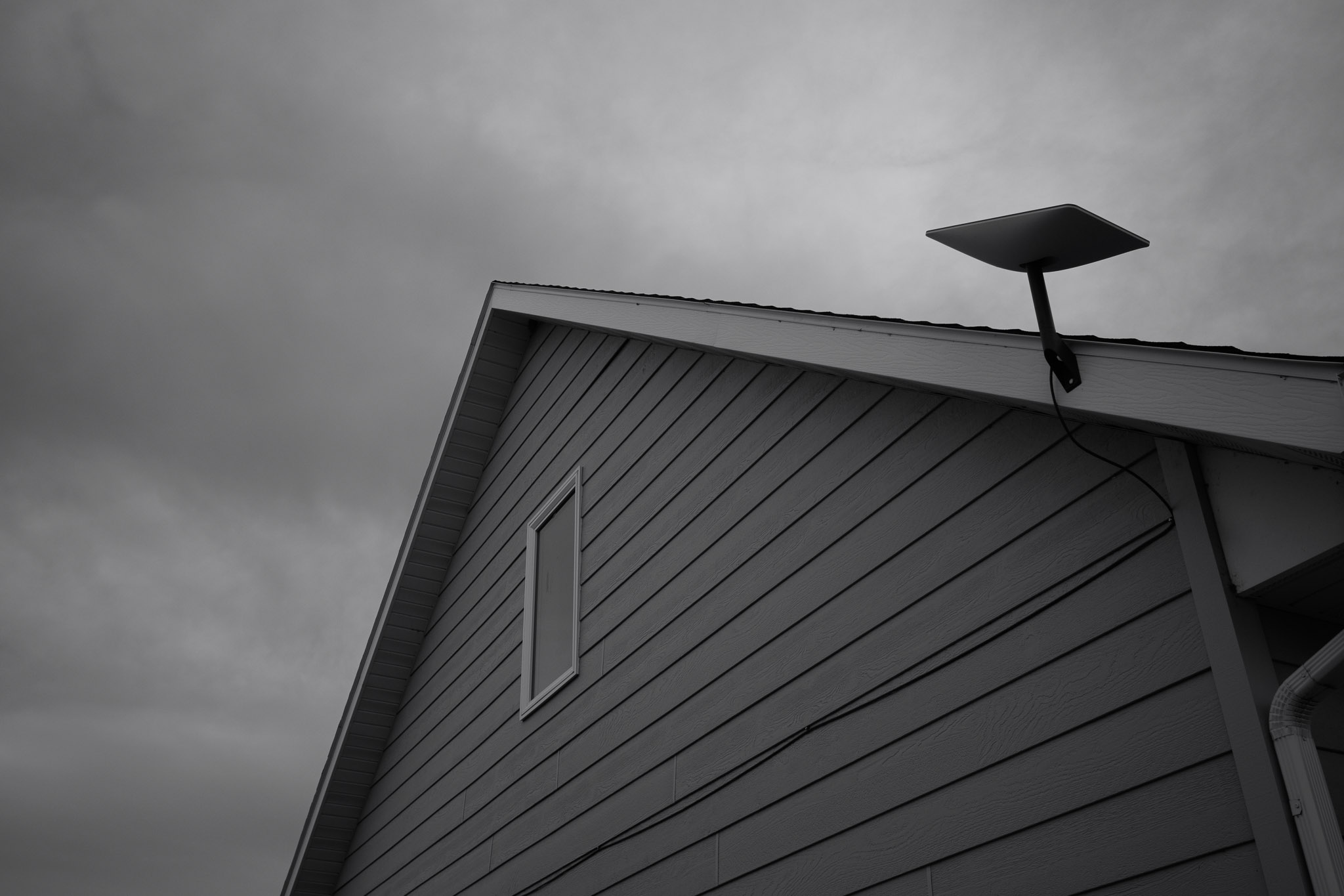 I used the short wall mount to attach the dish to the side of my roof. It took me a bit to decide exactly where I wanted to mount it, and where I wanted to run the cable through the wall. It was still damn cold when I installed it, so I installed it “well enough” to get by until late Spring.
