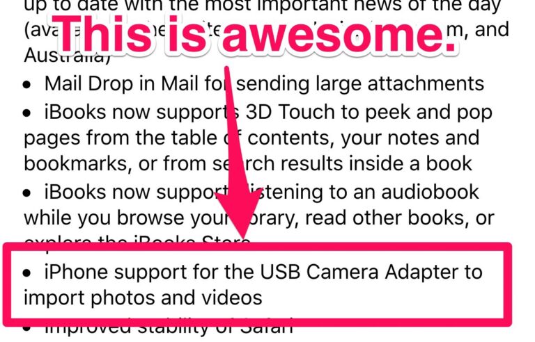 While updating my iPhone this morning, I noticed a line item that said the USB adapter on the Lightning camera connection kit will now work with the iPhone. I sold my old connection kit with my old iPad Mini, so…